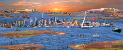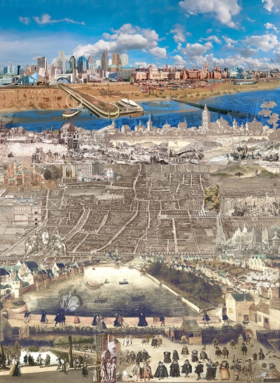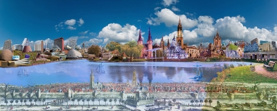 Het stadsportret is samengesteld uit verdwenen en bestaande architectuur, sculpturen en historische gebeurtenissen, historische kunstwerken en toekomstige bouwplannen. Tezamen vormt dit kunstwerk een unieke kijk op Voorburg.