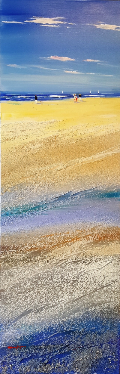 He first worked as a freelance graphic artist and then began to devote his time and passion to painting. His work reflects the various impressions of light and colour of the landscape.